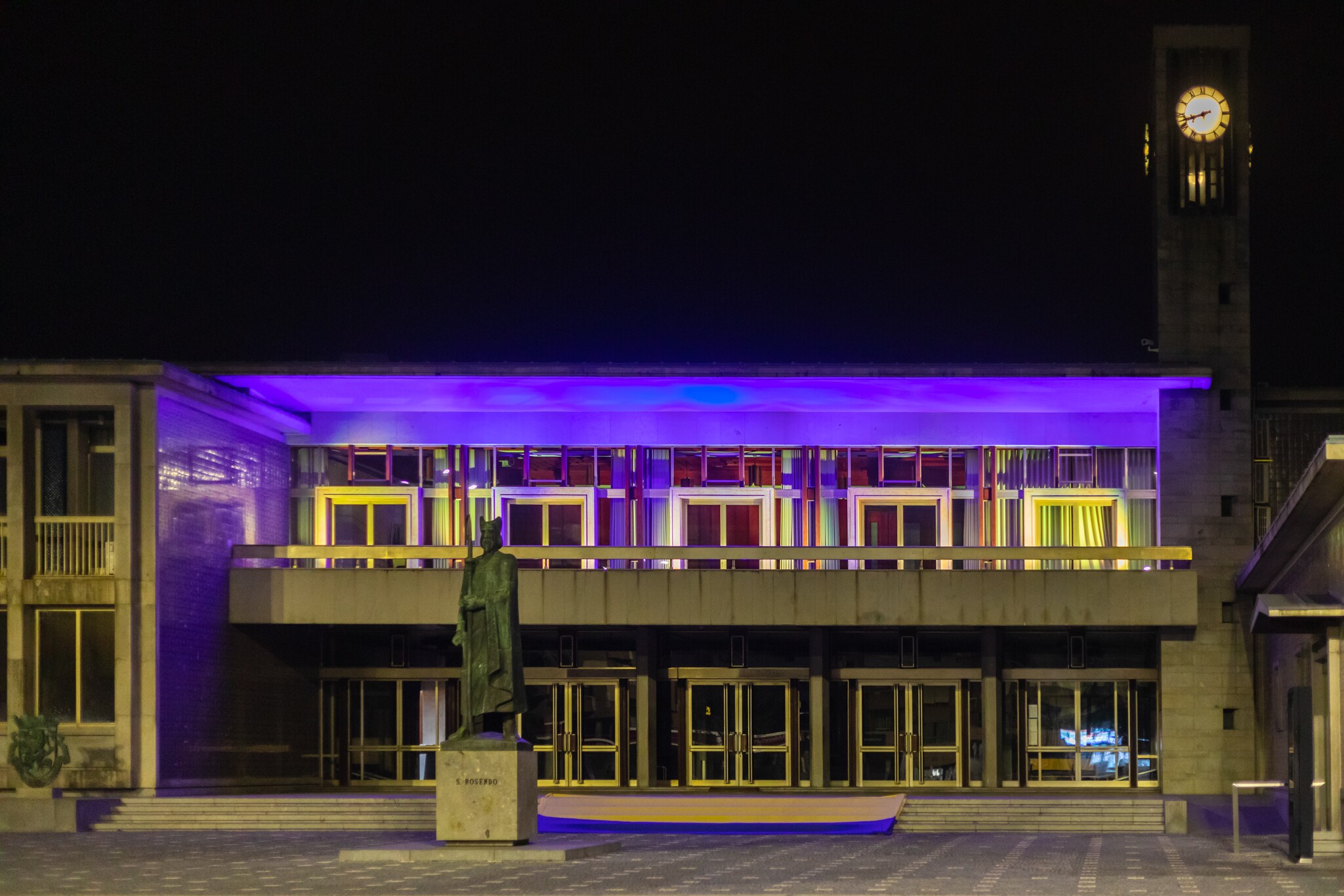 Câmara de Santo Tirso iluminada com as cores da bandeira da Ucrânia