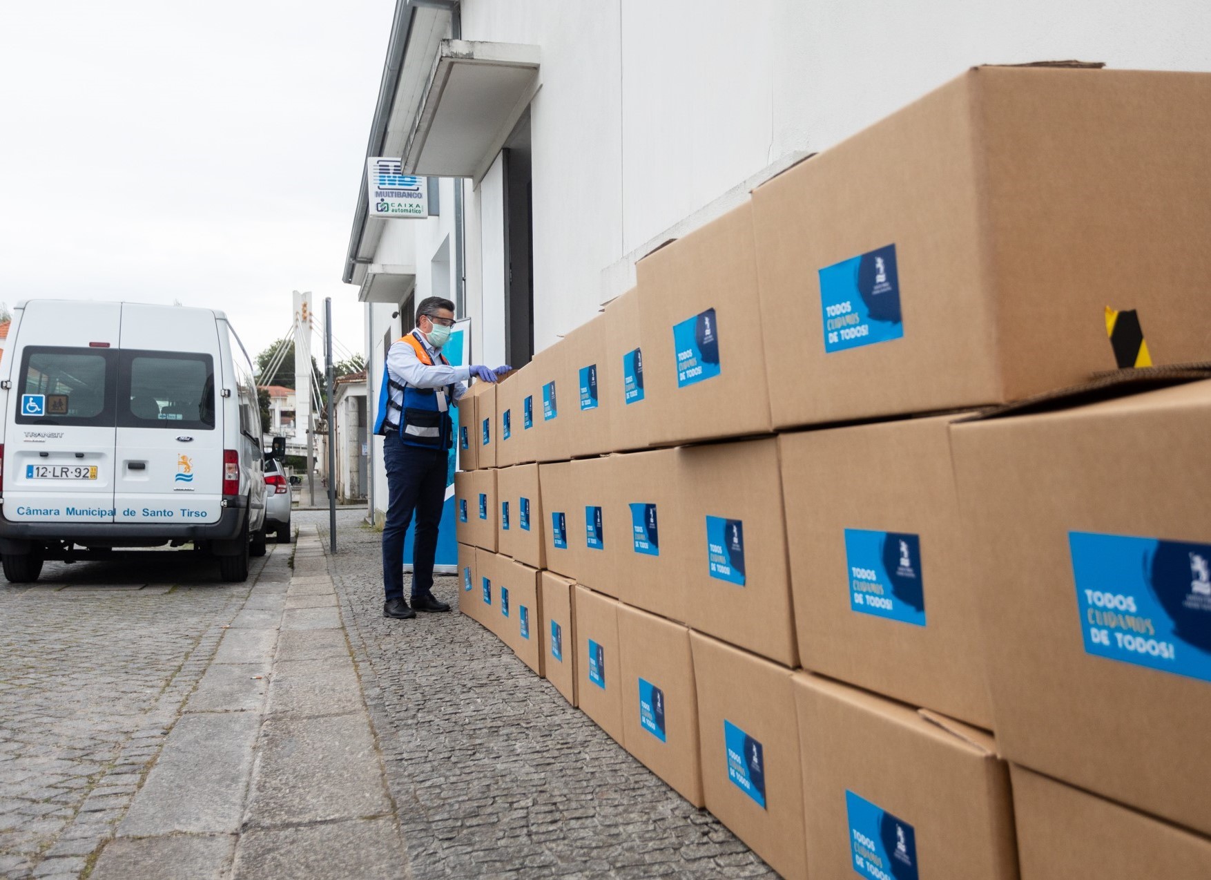 A Câmara Municipal de Santo Tirso distribuiu durante o dia de hoje, 31 de março, equipamentos de proteção individual por todas as instituições de solidariedade social com as valências de lar, Serviço de Apoio Domiciliário e Unidade de Cuidados Continuados e ainda por um conjunto de entidades nas áreas da saúde e da proteção civil do Município. Para o presidente da Câmara Municipal de Santo Tirso, Alberto Costa, “a entrega do material de proteção individual é mais uma resposta a uma necessidade identificada no terreno e à qual era preciso fazer face, com o objetivo de proteger aqueles que estão na primeira linha do combate à Covid-19”.