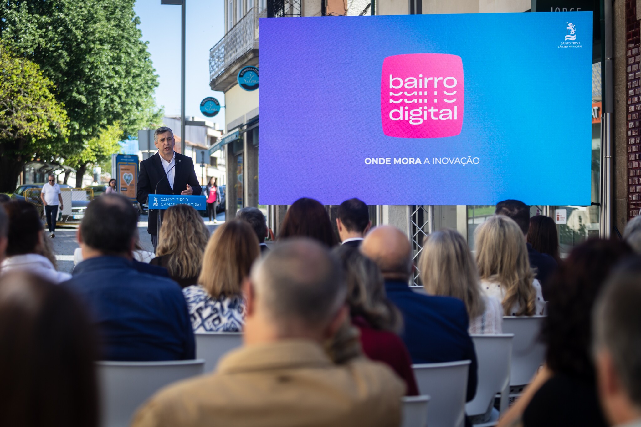 A apresentação do projeto decorreu ao ar livre, em plena Rua do Dr. Joaquim Augusto Pires de Lima, uma das mais representativas do comércio no centro da cidade, situada em plena área de implementação do Bairro Comercial Digital, cujo prazo de conclusão está previsto para dezembro de 2025.