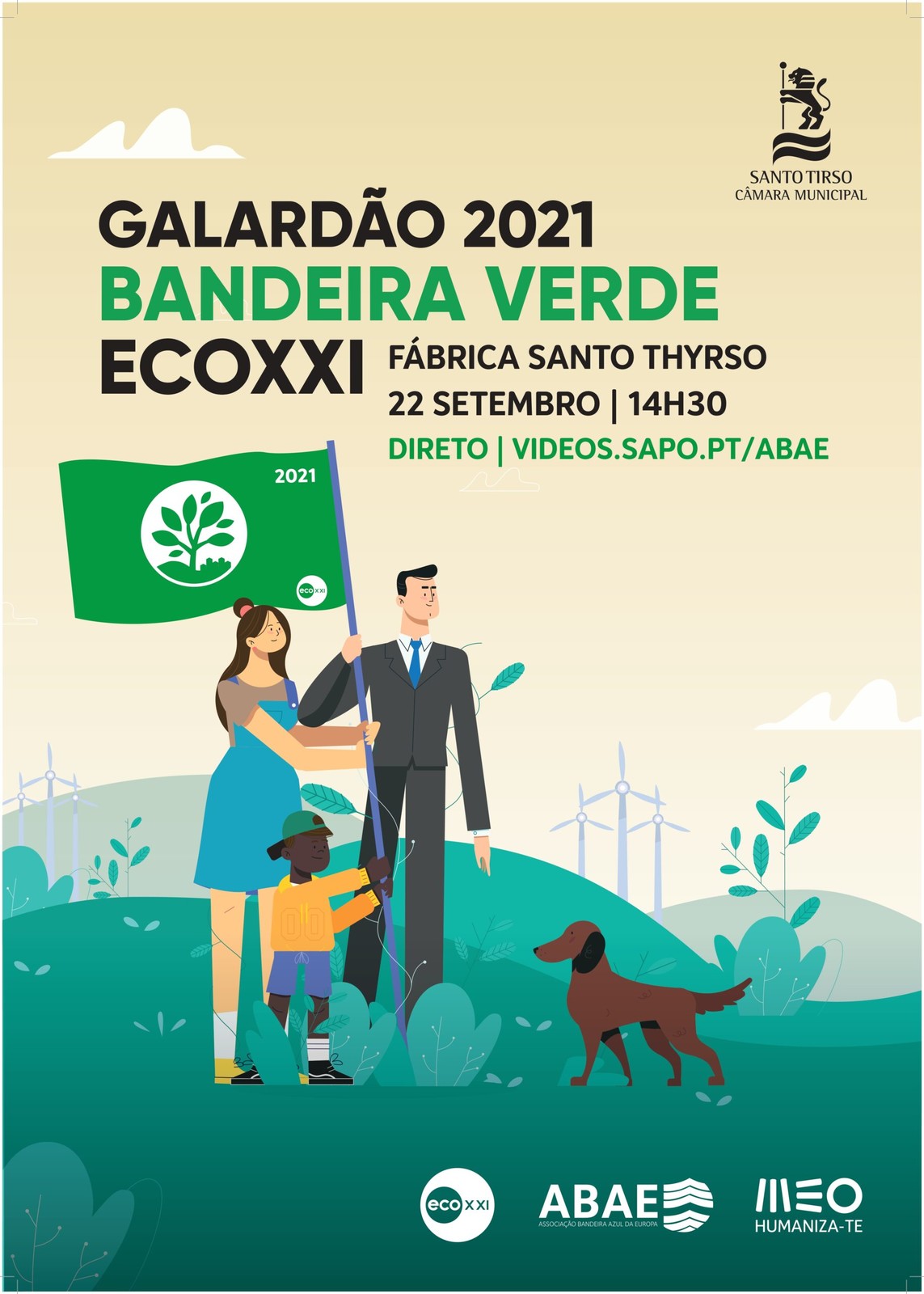 Santo Tirso recebe amanhã, 22 de setembro, a Cerimónia da Bandeira Verde ECOXXI 2021 – municípios sustentáveis, que terá lugar na Fábrica de Santo Thyrso.